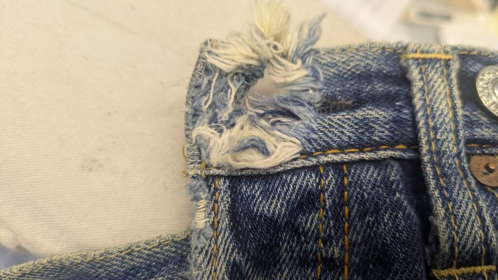 ジーンズ丈つめ ダメージ残し、チェーンステッチ (2024年09月07日)